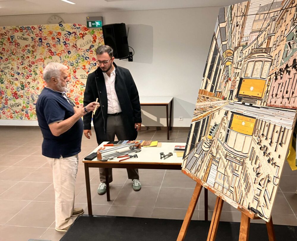 entam a relação entre alta performance e felicidade. Falou-se da importância da criatividade e da necessidade transversal desta competência em todas as áreas da atividade humana sobretudo num presente marcado pela galopante importância da inteligência generativa. Olhando a arte como um veículo potenciador de sinergias entre indivíduos, foi com um sorriso nos rostos que se escutou o discurso inspirador do Artista José Veiga Freire, podendo in loco não só apreciar a sua arte, mas assistir à demonstração da sua peculiar técnica.